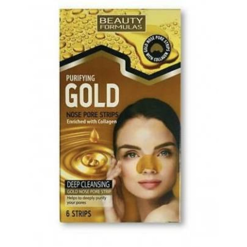 BEAUTY FORMULASCLEANSING GOLD NOSE PORE STIPRS / DEGUNA PORU ATTĪROŠAS STRĒMELES 6gab. Palīdz izcelt netīrumus, taukus un citas poru aizsprostojošas nepilnības tīrākai ādai. Dermatoloģiski pārbaudīts. Rezultāti ir nekavējoties, atstājot ādu jūtamies tīrāk un tīrāk. Lietošana: samitriniet deguna zonu, strēmele nelips pie sausas ādas. Nosusiniet sausas rokas un novelciet aizsargplēvi no strēmeles. Uzlieciet melno strēmeli uz samitrinātā deguna un ar gludām kustībām piespiediet pie tā, nodrošinot ciešu kontaktu ar ādu. Atstājiet strēmeli iedarboties uz 10-15minūtēm. Kad strēmele sāks palikt cieta un stīva, to var noņemt. Lēnām velciet no viena stūra uz centra pusi. Ja strēmele ir pārāk stingri pielipusi un ir sāpīgi to noņemt, samitriniet strēmeli un degunu un uzmanīgi noņemiet. Uzmanību: Nelietot zonās, kur ir akne un pumpas, iekaisums, apdegums, saules apdegums vai pārāk sausa āda. Ieteicams lietot 1-2x nedēļā, ne vairāk kā 3 reizes nedēļā. Ja rodas kairinājums, pārtrauciet lietošanu. Turēt prom no bērniem pieejamām vietām. Tikai ārīgai lietošanai. Ražots priekš Anglijas.